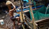 REPUBLIKA.CO.ID,Pekerja memanggul hasil parutan pohon sagu untuk dibuat tepung sagu di Kelurahan Sambuli, Kendari, Sulawesi Tenggara, Senin (19/9/2022).