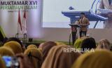 Peserta menghadiri pembukaan Muktamar XVI Persatuan Islam di Soreang, Kabupaten Bandung, Sabtu (24/9/2022). Muktamar XVI Persatuan Islam (Persis) yang dilaksanakan pada 23-26 September 2022 tersebut mengusung tema Transformasi Gerakan Dakwah Persis Untuk Mewujudkan Islam Rahmatan Lil Alamien Dalam Bingkai NKRI. (FOTO : REPUBLIKA/ABDAN SYAKURA)