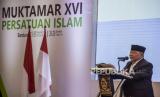 REPUBLIKA.CO.ID, BANDUNG -- Ketua Umum PP Persatuan Islam KH Aceng Zakaria memberikan sambutan pada pembukaan Muktamar XVI Persatuan Islam di Soreang, Kabupaten Bandung, Sabtu (24/9/2022).