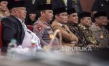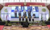 Ketua Umum PP Persatuan Islam KH Aceng Zakaria (kiri) bersama Kapolri Jenderal Listyo Sigit Prabowo (kedua kiri) dan Gubernur Jawa Barat Ridwan Kamil (ketiga kiri) saat menghadiri pembukaan Muktamar XVI Persatuan Islam di Soreang, Kabupaten Bandung, Sabtu (24/9/2022). Muktamar XVI Persatuan Islam (Persis) yang dilaksanakan pada 23-26 September 2022 tersebut mengusung tema Transformasi Gerakan Dakwah Persis Untuk Mewujudkan Islam Rahmatan Lil Alamien Dalam Bingkai NKRI. (FOTO : REPUBLIKA/ABDAN SYAKURA)