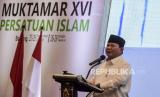 Menteri Pertahanan Prabowo Subianto memberikan sambutan pada pembukaan Muktamar XVI Persatuan Islam di Soreang, Kabupaten Bandung, Sabtu (24/9/2022). Muktamar XVI Persatuan Islam (Persis) yang dilaksanakan pada 23-26 September 2022 tersebut mengusung tema Transformasi Gerakan Dakwah Persis Untuk Mewujudkan Islam Rahmatan Lil Alamien Dalam Bingkai NKRI. (FOTO : REPUBLIKA/ABDAN SYAKURA)