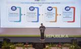 Menteri BUMN Erick Thohir menyampaikan orasi kebangsaan pada Muktamar XVI Persatuan Islam (Persis) di Soreang, Kabupaten Bandung, Sabtu (24/9/2022). Pada kesempatan tersebut Menteri BUMN Erick Thohir menyampaikan orasi kebangsaan dengan tema Langkah-langkah Strategis Penguatan Ekonomi Umat Untuk Indonesia Maju dan Berdikari. Republika/Abdan Syakura (FOTO : REPUBLIKA/ABDAN SYAKURA)
