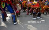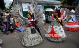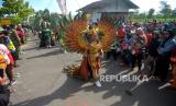 Warga menggunakan kostum kontemporer mengikuti kirab Bedol Projo Sidokarto 2022 di Sleman, Yogyakarta, Ahad (25/9/2022). Kegiatan kirab ini diikuti oleh 14 pedukuhan dan 5 komplek perumahan yang berada di Kelurahan Sidokarto, Sleman. Disamping kirab, juga diadakan berbagai kegiatan seperti pasar murah, jalan sehat yang merekatkan kembali kebersamaan antarwarga. Selain itu, juga untuk melestarikan budaya dan tradisi. (FOTO : Republika/Wihdan Hidayat)