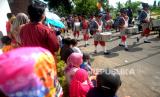 Warga menonton kirab Bedol Projo Sidokarto 2022 di Sleman, Yogyakarta, Ahad (25/9/2022). Kegiatan kirab ini diikuti oleh 14 pedukuhan dan 5 komplek perumahan yang berada di Kelurahan Sidokarto, Sleman. Disamping kirab, juga diadakan berbagai kegiatan seperti pasar murah, jalan sehat yang merekatkan kembali kebersamaan antarwarga. Selain itu, juga untuk melestarikan budaya dan tradisi. (FOTO : Republika/Wihdan Hidayat)