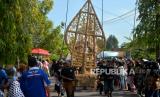 Peserta membawa gunungan dari jerami saat mengikuti kirab Bedol Projo Sidokarto 2022 di Sleman, Yogyakarta, Ahad (25/9/2022). Kegiatan kirab ini diikuti oleh 14 pedukuhan dan 5 komplek perumahan yang berada di Kelurahan Sidokarto, Sleman. Disamping kirab, juga diadakan berbagai kegiatan seperti pasar murah, jalan sehat yang merekatkan kembali kebersamaan antarwarga. Selain itu, juga untuk melestarikan budaya dan tradisi. (FOTO : Republika/Wihdan Hidayat)