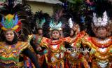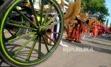 Peserta menggunakan pakaian tradisional mengikuti kirab Bedol Projo Sidokarto 2022 di Sleman, Yogyakarta, Ahad (25/9/2022). Kegiatan kirab ini diikuti oleh 14 pedukuhan dan 5 komplek perumahan yang berada di Kelurahan Sidokarto, Sleman. Disamping kirab, juga diadakan berbagai kegiatan seperti pasar murah, jalan sehat yang merekatkan kembali kebersamaan antarwarga. Selain itu, juga untuk melestarikan budaya dan tradisi. (FOTO : Republika/Wihdan Hidayat)