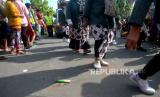 Antusiasme warga menonton kirab Bedol Projo Sidokarto 2022 di Sleman, Yogyakarta, Ahad (25/9/2022). Kegiatan kirab ini diikuti oleh 14 pedukuhan dan 5 komplek perumahan yang berada di Kelurahan Sidokarto, Sleman. Disamping kirab, juga diadakan berbagai kegiatan seperti pasar murah, jalan sehat yang merekatkan kembali kebersamaan antarwarga. Selain itu, juga untuk melestarikan budaya dan tradisi. (FOTO : Republika/Wihdan Hidayat)