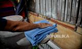 REPUBLIKA.CO.ID,JAKARTA -- Gino (45) penjahit keliling, menyelesaikan jahitannya saat mangkal di kawasan Petamburan, Jakarta, Selasa (27/9/2022).