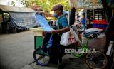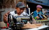 Gino (45) penjahit keliling, menyelesaikan jahitannya saat mangkal di kawasan Petamburan, Jakarta, Selasa (27/9/2022). Menurutnya, penghasilan dari jasa vermak dalam sehari berkisar Rp50.000 hingga Rp150.000, dengan ongkos jasa mulai dari Rp5.000 hingga Rp50.000 tergantung kesulitannya. Sementara Ombudsman RI menilai seharusnya pemerintah memperluas penyaluran bantuan subsidi upah (BSU) menyasar pekerja informal sebagai respons dari kebijakan kenaikan harga BBM. Saat ini BSU masih menyasar sektor pekerja formal yang terdaftar di BPJS Ketenagakerjaan dengan penghasilan dibawah Rp3,5 juta. Republika/Thoudy Badai (FOTO : Republika/Thoudy Badai)