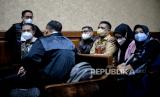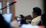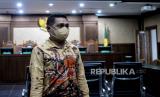 Terdakwa Kepala Dinas Lingkungan Hidup Kabupaten Muna, Laode M. Syukur Akbar menjalani sidang vonis di Pengadilan Negeri Tipikor, Jakarta, Rabu (28/9/2022). Majelis Hakim memvonis Laode M. Syukur Akbar dengan penjara 5 tahun, denda 250 juta subsider 3 bulan kurungan serta membayar uang pengganti sejumlah Rp175 juta setelah dinyatakan terbukti melakukan tindak pidana korupsi pengajuan pinjaman dana PEN daerah. (FOTO : Republika/Thoudy Badai)