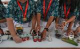 Sejumlah siswa menunjukkan racikan rempah untuk produk karya tulis ilmiah mereka di Laboratorium SMA Negeri 2 Palangka Raya, Kalimantan Tengah, Kamis (6/10/2022). Sebanyak delapan siswa sekolah tersebut berhasil meraih juara dua medali emas dan perak pada ajang karya tulis ilmiah World Invention Competition Exhibition (WICE) 2022 yang digelar di Malaysia dengan membuat karya yaitu pembungkus makanan protein tinggi ikan dan daging, obat hepatitis, serta pupuk pembasmi kutu kebul pada tanaman yang ramah lingkungan. (FOTO : ANTARA/Makna Zaezar)