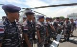 Kaskoarmada II Laksma TNI Andi Abdul Aziz (kedua kanan) bersalaman dengan personel TNI Angkatan Laut yang merupakan Satgas Latihan Bersama (Latma) Multilateral Naval Exercise Kakadu 2022 di atas KRI Raden Eddy Martadinata-331 setibanya di Koarmada II, Surabaya, Jawa Timur, Jumat (7/10/2022). KRI Raden Eddy Martadinata-331 yang membawa 132 personelnya kembali ke Surabaya setelah mengikuti latihan bersama dengan sejumlah negara peserta selama 30 hari di perairan utara Australia.  (FOTO : ANTARA/Didik Suhartono)