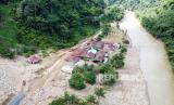 Foto udara perkampungan yang terkena longsor akibat banjir bandang di Desa Sondoang, Kecamatan Kalukku, Mamuju, Sulawesi Barat, Jumat (14/10/2022). Berdasarkan data sementara Badan Penanggulangan Bencana Daerah (BPBD) Kabupaten Mamuju sebanyak enam rumah hanyut, dua rumah tertimbun longsor, dan 13 rumah rusak berat serta 1.625 kepala keluarga dengan 5.273 jiwa terdampak musibah tersebut. (FOTO : ANTARA/Akbar Tado)