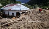 REPUBLIKA.CO.ID,MAMUJU -- Warga melihat rumah yang terkena longsor akibat banjir bandang di Desa Sondoang, Kecamatan Kalukku, Mamuju, Sulawesi Barat, Jumat (14/10/2022).