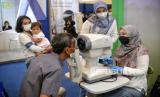 Pengunjung mengecek kesehatan mata saat Pameran Teknologi Farmasi dan alat kesehatan (alkes) di Tangerang, Banten, Kamis (3/11/2022). Pameran tersebut dalam rangka memperingati Hari Kesehatan Nasional ke-58 dengan menampilkan beragam inovasi produk kesehatan karya anak bangsa guna melakukan transformasi teknologi dalam mendorong ketahanan peralatan farmasi buatan dalam negeri. Republika/Thoudy Badai (FOTO : Republika/Thoudy Badai)