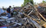 Orang-orang mencari barang-barang yang dapat digunakan dari rumah mereka yang hancur dalam gempa Senin di Cianjur, Jawa Barat, Indonesia, Kamis, 24 November 2022. Gempa berkekuatan 5,6 menyebabkan ratusan orang tewas, terluka dan hilang ketika bangunan runtuh dan warga yang ketakutan berlarian menyelamatkan diri. Pulau Jawa utama Indonesia. (FOTO : AP/Tatan Syuflana)