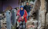 REPUBLIKA.CO.ID,CIANJUR -- Orang tua korban Imas (34) bersama suaminya menunggu hasil evakuasi tim SAR gabungan saat pencarian korban yang diduga anaknya di Gedung Madrasah Nurul Iman, Desa Mangunkerta, Kecamatan Cugenang, Kabupaten Cianjur, Jawa Barat, Kamis (24/11/2022).