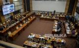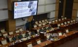 Suasana uji kelayakan dan kepatutan calon Panglima TNI yang diikuti olehKepala Staf TNI Angkatan Laut (KSAL) Laksamana Yudo Margono di Kompleks Parlemen, Senayan, Jakarta, Jumat (2/12/2022). KSAL Yudo Margono menjadi calon tunggal panglima TNI menggantikan Jenderal Andika Perkasa yang akan memasuki masa pensiun pada 21 Desember 2022. Pada kesempatan tersebut, Yudo memaparkan empat program prioritas mewujudkan visi TNI yang patriot. Republika/Putra M. Akbar (FOTO : Republika/Putra M. Akbar)
