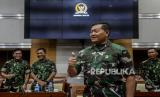 Kepala Staf TNI Angkatan Laut (KSAL) Laksamana Yudo Margono memberikan pemaparan saat uji kelayakan dan kepatutan calon Panglima TNI di Kompleks Parlemen, Senayan, Jakarta, Jumat (2/12/2022). KSAL Yudo Margono menjadi calon tunggal panglima TNI menggantikan Jenderal Andika Perkasa yang akan memasuki masa pensiun pada 21 Desember 2022. Pada kesempatan tersebut, Yudo memaparkan empat program prioritas mewujudkan visi TNI yang patriot. Republika/Putra M. Akbar (FOTO : Republika/Putra M. Akbar)