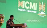 Menteri Koordinator Bidang Pembangunan Manusia dan Kebudayaan (Menko PMK) Muhadjir Effendy menyampaikan sambutan sekaligus membuka acara Silaturahmi Kerja Nasional (SILAKNAS) dan Milad ke-32 Ikatan Cendekiawan Muslim se-Indonesia (ICMI) di Gedung BJ Habibie Badan Riset Inovasi Nasional (BRIN), Jakarta, Sabtu (3/12/2022). Acara tersebut mengahdirkan beragam rangkain kegiatan diantaranya pelatihan kepemimpinan serta menggelar konvensi nasional ekonomi dan keuangan syariah. Silaknas tersebut mengangkat tema ICMI Menginspirasi dan Memberi Solusi Untuk Indonesia yang digelar pada 3-4 Desembe 2022. (FOTO : Republika/Thoudy Badai)