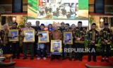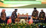 Menteri Koordinator Bidang Pembangunan Manusia dan Kebudayaan (Menko PMK) Muhadjir Effendy (kelima kiri) bersama Menteri Pariwisata dan Ekonomi Kreatif Sandiaga Uno (ketiga kanan) dan Ketua Umum ICMI Arif Satri (kelima kanan) saat membuka acara Silaturahmi Kerja Nasional (SILAKNAS) dan Milad ke-32 Ikatan Cendekiawan Muslim se-Indonesia (ICMI) di Gedung BJ Habibie Badan Riset Inovasi Nasional (BRIN), Jakarta, Sabtu (3/12/2022). Acara tersebut mengahdirkan beragam rangkain kegiatan diantaranya pelatihan kepemimpinan serta menggelar konvensi nasional ekonomi dan keuangan syariah. Silaknas tersebut mengangkat tema ICMI Menginspirasi dan Memberi Solusi Untuk Indonesia yang digelar pada 3-4 Desembe 2022. (FOTO : Republika/Thoudy Badai)