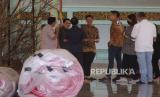 REPUBLIKA.CO.ID, SOLO -- Menteri Badan Usaha Milik Negara (BUMN) Erick Thohir (tengah) bersama Menteri Investasi/Kepala BKPM Bahlil Lahadalia (kedua kanan) dan Wali Kota Solo Gibran Rakabuming Raka (kiri) mengecek persiapan lokasi pesta rakyat dan resepsi ngunduh mantu acara pernikahan Putra bungsu Presiden Joko Widodo, Kaesang Pangarep dengan Erina Gudono, di Solo, Jawa Tengah, Rabu (7/12/2022). Resepsi ngunduh mantu pernikahan Kaesang Pangarep dengan Erina Gudono akan digelar di Pura Mangkunegaran, Solo, Jawa Tengah, Minggu (11/12/2022).