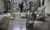 Pengunjung melihat karya seni rupa yang dipajang pada pameran Art Braga Urban Culture di Gedung Gas Negara, Braga, Kota Bandung, Kamis (15/12/2022). Pameran kolaborasi sejumlah seniman dan komunitas Kota Bandung tersebut menampilkan sejumlah karya seni rupa seperti patung, sulam dan seni instalasi yang mengusung tema tentang permasalahan lingkungan, kritik sosial dan keadilan di Indonesia. (FOTO : ABDAN SYAKURA/REPUBLIKA)