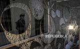 Pengunjung melihat karya seni rupa yang dipajang pada pameran Art Braga Urban Culture di Gedung Gas Negara, Braga, Kota Bandung, Kamis (15/12/2022). Pameran kolaborasi sejumlah seniman dan komunitas Kota Bandung tersebut menampilkan sejumlah karya seni rupa seperti patung, sulam dan seni instalasi yang mengusung tema tentang permasalahan lingkungan, kritik sosial dan keadilan di Indonesia. Republika/Abdan Syakura (FOTO : ABDAN SYAKURA/REPUBLIKA)