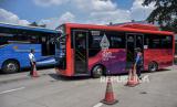 Uji Coba Bus Kota Listrik di Terminal Leuwipanjang, Bandung (1)