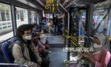 Penumpang berada di dalam bus listrik di Terminal Leuwipanjang, Kota Bandung, Selasa (20/12/2022). Sebanyak delapan unit bus listrik bantuan dari Kementerian Perhubungan (Kemenhub) mulai diujicobakan di Kota Bandung pada Senin (19/12/2022). Untuk tahap pertama, bus listrik diuji coba melalui rute Terminal Leuwipanjang-Dago dengan tarif Rp4.900. Republika/Abdan Syakura (FOTO : ABDAN SYAKURA/REPUBLIKA)
