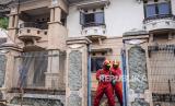 Petugas Damkar menyemprot disinfektan pada rumah mewah terbengkalai di Jalan Paron, Cakung Jakarta, Kamis (5/1/2023). Rumah mewah terbengkalai tersebut dihuni oleh Tiko dan ibunya Eny yang mengalami depresi tanpa listrik dan air bersih selama bertahun-tahun, yang diduga karena ditinggal oleh suaminya dan faktor ekonomi. Kini rumah mewah dua lantai tersebut telah dibersihkan oleh Petugas Damkar, PPSU dan kelompok relawan dan Eny sudah dirujuk ke Rumah Sakit Jiwa Duren Sawit untuk menjalani perawatan. (FOTO : Republika/Putra M. Akbar)