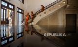 Petugas PPSU melihat kondisi rumah mewah terbengkalai yang sudah dibersihkan di Jalan Paron, Cakung Jakarta, Kamis (5/1/2023). Rumah mewah terbengkalai tersebut dihuni oleh Tiko dan ibunya Eny yang mengalami depresi tanpa listrik dan air bersih selama bertahun-tahun, yang diduga karena ditinggal oleh suaminya dan faktor ekonomi. Kini rumah mewah dua lantai tersebut telah dibersihkan oleh Petugas Damkar, PPSU dan kelompok relawan dan Eny sudah dirujuk ke Rumah Sakit Jiwa Duren Sawit untuk menjalani perawatan. (FOTO : Republika/Putra M. Akbar)