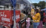 Sejumlah warga membeli jajanan ciki ngebul (cikbul) di Jalan Dr Ir Sukarno, Sumur Bandung, Kota Bandung, Sabtu (7/1/2023). Kementerian Kesehatan (Kemenkes) meminta seluruh pihak, terutama Dinas Kesehatan (Dinkes) dan rumah sakit di Indonesia untuk mewaspadai jika ada temuan kasus keracunan jajanan cikbul yang menggunakan nitrogen cair. Imbauan tersebut disampaikan seiring dengan pelaporan kasus peningkatan korban keracunan cikbul nitrogen cair di Provinsi Jawa Barat. (FOTO : ABDAN SYAKURA/REPUBLIKA)