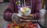 Penjual jajanan ciki ngebul (cikbul) melayani pembeli di Jalan Dr Ir Sukarno, Sumur Bandung, Kota Bandung, Sabtu (7/1/2023). Kementerian Kesehatan (Kemenkes) meminta seluruh pihak, terutama Dinas Kesehatan (Dinkes) dan rumah sakit di Indonesia untuk mewaspadai jika ada temuan kasus keracunan jajanan cikbul yang menggunakan nitrogen cair. Imbauan tersebut disampaikan seiring dengan pelaporan kasus peningkatan korban keracunan cikbul nitrogen cair di Provinsi Jawa Barat. (FOTO : ABDAN SYAKURA/REPUBLIKA)