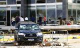 Kendaraan pemerintah yang diparkir di luar gedung Mahkamah Agung Brasil, dirusak oleh pendukung mantan Presiden Brasil Jair Bolsonaro, di Brasilia, Brasil, Selasa (10/1/ 2023). Pendukung Bolsonaro yang menolak menerima kekalahan pemilihannya menyerbu Kongres, Mahkamah Agung, dan istana kepresidenan Minggu, seminggu setelah pelantikan saingan kirinya, Presiden Luiz Inacio Lula da Silva. (FOTO : AP/Eraldo Peres)