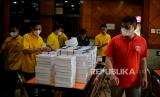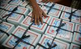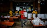 Pramusaji menyiapkan kotak nasi pesanan konsumen sebelum dikirim di Rumah Makan Padang Surya di Jalan Bendungan Hilir, Jakarta, Kamis (12/1/2023). (FOTO : Republika/Thoudy Badai)