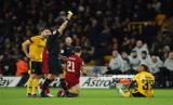 Kiper Wolverhampton Wanderers Jose Sa dan Nathan Collins menahan serangan saat Wolverhampton Wanderers melawan Liverpool dalam Pertandingan Putaran Ketiga Piala FA 2022-2023 di Stadion Molineux, Wolverhampton, Inggris, Rabu (18/1/ 2023) dini hari. (FOTO : REUTERS/Phil Noble)