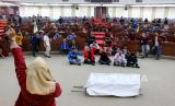 Sejumlah mahasiswa melakukan unjuk rasa di dalam ruang rapat Gedung DPRD Sumatera Utara di Medan, Sumatera Utara, Kamis (26/1/2023). Massa gabungan dari sejumlah organisasi Mahasiswa tersebut menolak Peraturan Pemerintah Pengganti Undang-Undang Nomor 2 tahun 2022 tentang Cipta Kerja (Ciptaker). (FOTO : ANTARA FOTO/Yudi)