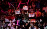 Penonton menyaksikan pertandingan tunggal putra Indonesia Chico Aura Dwi Wardoyo melawan tunggal putra Hong Kong Ng Ka Long Angus pada babak Semifinal Daihatsu Indonesia Masters 2023 di Istora Gelora Bung Karno, Senayan, Jakarta, Rabu (25/1/2023). Chico berhasil berhasil lolos ke babak final usai mengalahkan tunggal putra Hong Kong dengan skor 17-21, 27-25 dan 22-20. (FOTO : Republika/Thoudy Badai)
