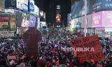 REPUBLIKA.CO.ID,  NEW YORK  --   Aksi protes di Times Square, New York, AS Ahad (29/1/2023) WIB.