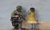 REPUBLIKA.CO.ID, KYIV -- Mural Perdamaian yang dibuat oleh TVBOY di dinding pusat budaya yang rusak di kota Irpin, dekat Kyiv, Ukraina, Sabtu (28/1/2023).