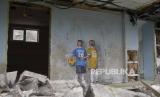 Mural yang dibuat oleh TVBOY di dinding pusat budaya yang rusak di kota Irpin, dekat Kyiv, Ukraina, Sabtu (28/1/2023). (FOTO : EPA-EFE/ANDRII NESTERENKO)