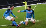 Pemain depan Napoli Giovanni Simeone (R) melakukan celebrassi bersama rekan setimnya setelah mencetak keunggulan 2-1 pada pertandingan sepak bola Serie A Italia SSC Napoli vs AS Roma di stadion (FOTO : EPA-EFE/CESARE ABBATE)