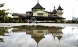 REPUBLIKA.CO.ID,SAMBAS -- Wisatawan melintasi halaman masjid Agung di kompleks Istana Kesultanan Alwatziekhoebillah Sambas, Kalimantan Barat, Senin (30/1/2023).