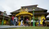 Wisatawan mengunjungi kompleks Istana Kesultanan Alwatziekhoebillah Sambas, Kalimantan Barat, Senin (30/1/2023). Istana yang dibangun pada pemerintahan Sultan Muhammad Mulia Ibrahim pada tahun 1933 tersebut menjadi salah satu destinasi wisata sejarah di provinsi Kalimantan Barat. ANTARA FOTO/Anis Efizudin/foc. (FOTO : Antara/Anis Efizudin)
