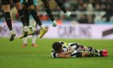 Pemain Newcastle United Joe Willock berbaring melakukan pertahanan saat tendangan bebas dalam pertandingan sepak bola Semi Final Carabao Cup 2022/2023 Newcastle United melawan Southampton di St. James Park, Inggris, Rabu, (1/2/2023)WIB. (FOTO : Reuters/Lee Smith)