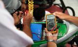 Siswa mengecek kondisi motor listrik sebelum diuji coba di SMKN 1 Nglegok, Blitar, Jawa Timur, Rabu (1/2/2023). (FOTO : ANTARA FOTO/Irfan Anshori)
