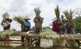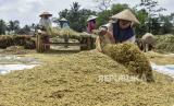 REPUBLIKA.CO.ID,CIAMIS -- Petani merontokkan padi saat musim panen di Desa Imbanagara, Kabupaten Ciamis, Jawa Barat, Rabu (1/2/2023).