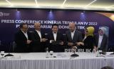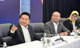 Direktur Utama PT Bank Syariah Indonesia Tbk (BSI) Hery Gunardi (kiri) saat konferensi pers Kinerja BSI Triwulan IV 2022 di Jakarta, Rabu (1/2/2023). BSI membukukan kinerja impresif sepanjang 2022 dengan membukukan laba bersih sebesar Rp4,26 triliun, tumbuh 40,68 persen secara tahunan (yoy). (FOTO : Republika/Edwin Dwi Putranto)