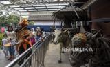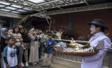 Badut dari Komunitas Aras memandu sejumlah anak beserta orang tua untuk mengelilingi museum saat pertunjukan Clownaval di Museum Sri Baduga, Jalan BKR, Astanaanyar, Kota Bandung, Provinsi Jawa Barat, Kamis (2/1/2023). Gelaran Clownaval yang merupakan salah satu rangkaian dari Main-Mind di Museum tersebut bertujuan untuk menjadikan museum sebagai ruang inklusif serta pembaharuan metode pembelajaran di museum secara interaktif. (FOTO : ABDAN SYAKURA/REPUBLIKA)